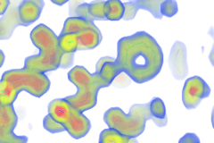 - Use your mouse to explore the density, center on atoms with middle-click. Adjust the clipping slab by scrolling the mouse wheel. Pay attention to the high density of backbone oxygens, nicely highlighted by our color gradient.