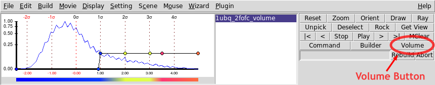 - Object menu panel: 1ubq_2fofc > A > volume > default